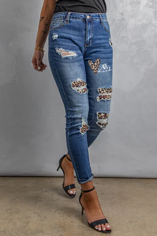 4. Leopard Ripped Slim Jeans
