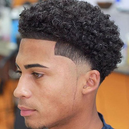 This afro hairstyle will have shorter sides and shaved temples. If you want to give your curly hair a defined shape, consider this high fade haircut.