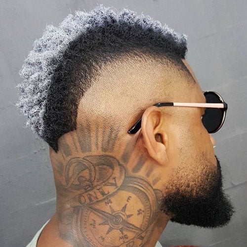 The famous R&B singer Usher has popularized the burst fade mohawk haircut. It features a wide faux hawk on top with a burst fade on the sides. If you don’t want to go for a spiky mohawk style, and looking for a clean alternative, try this.