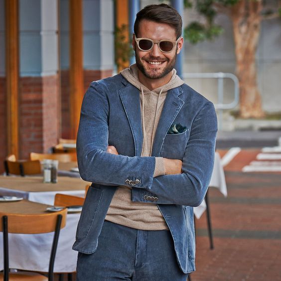 1. The hoodie and the blazer should be of different colors. Going matchy here can make the overall look dull.