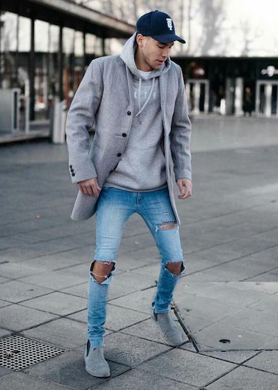 Yes, here we’re talking about a casual long blazer. The blazer should have an unstructured design and should compose of lightweight materials like linen to create a relaxed aesthetic. Such a relaxed aesthetic will match perfectly with a pair of ripped jeans. Go for a ripped jeans that come in a vintage wash. Don’t wear jeans having too many shreds or holes, as it will work against you. Finish off the look with a baseball cap.