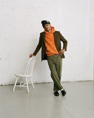 Beanies can change a look quickly and effectively. For that, knowing how to style with beanies is crucial. Chinos, on the other hand, can give you a relaxed and casual look. Pair a light colored hoodie like off-white, light yellow or orange under a brown blazer to reflect your laid back attitude for the day. Switch up the outfit instantly with olive chinos and a pair of black leather loafers.
