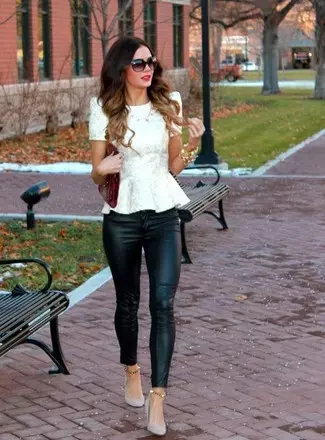 A lace top can lend generous amounts of dainty femininity to your look. If you want to start experimenting with lace, but don’t want to be too bold, a lace blouse is the best place to start. Seal this eye-catching look with a pair of leather pants. Avoid overly accessorizing. Just simple earrings and heeled shoes will do the trick.