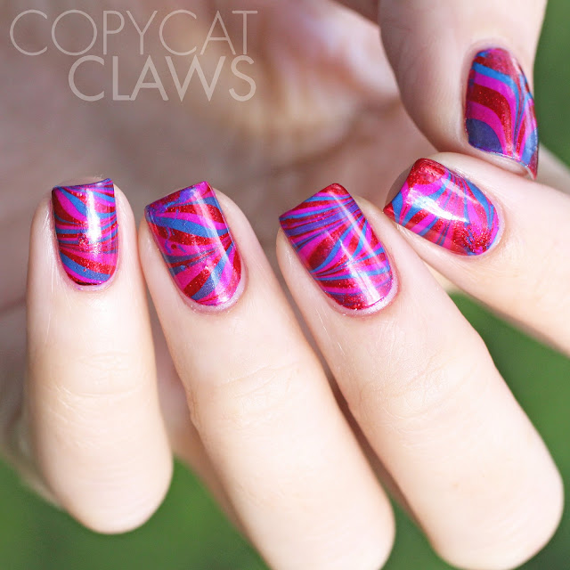 2. Red and Pink Water Marble Nail Design