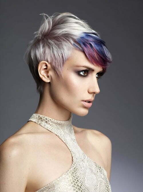 The bright blue streaks on the angled bob look classy and suit almost all face shapes. A blonde angled bob is pretty edgy as it is, and the midnight blue streaks will steal the breath away. However, you can top the blue streaks with juicy pink for a more vibrant effect.
