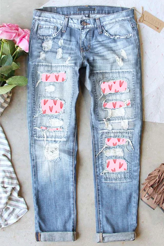 5. Casual Floral Print Ripped Straight Denim Jeans