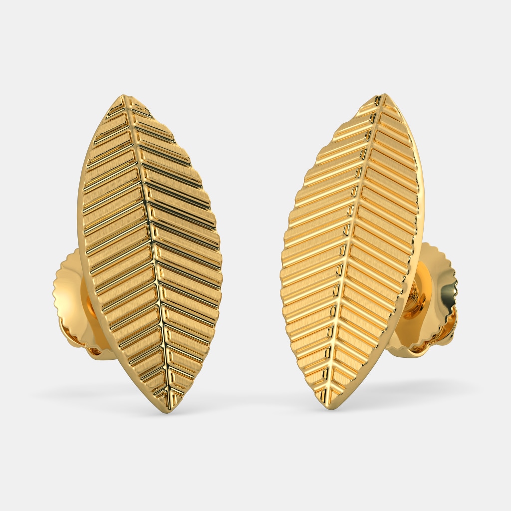 Gold earrings featuring branch shapes with leaves on them look modern and cool. They are lightweight pieces with all kinds of modern outfits and even traditional sarees.