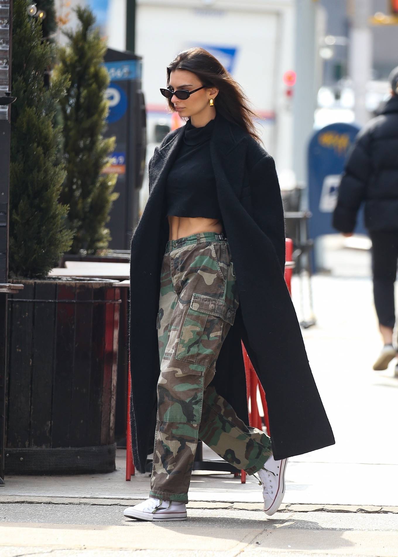 Take a pair of your favorite neutral cargo pants and tuck in a soft, attractive turtleneck under them. A pair of black or white sneakers will not only complete the look but will also elevate your casual style statement.